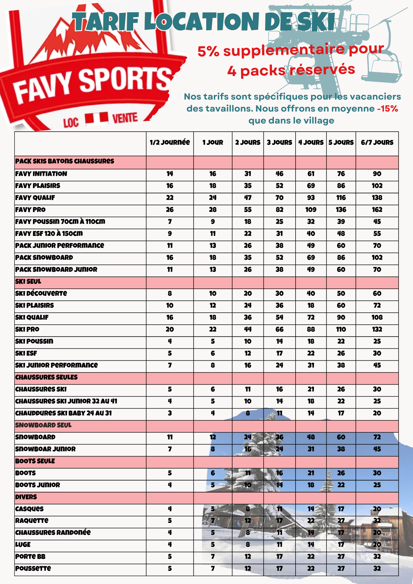 + Dès tarifs compétitif pour les vacanciers des Tavaillons.